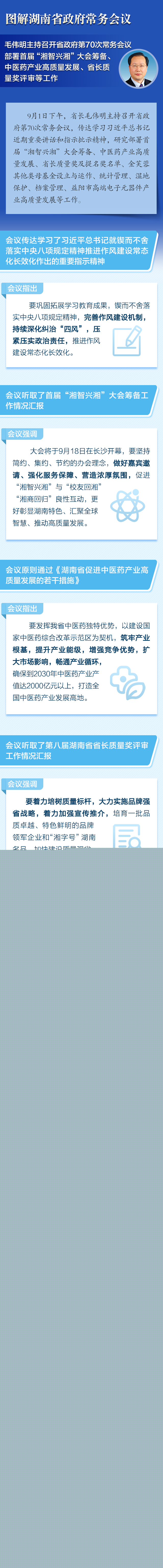 【圖解】9月1日省政府常務(wù)會(huì)議:部署首屆“湘智興湘”大會(huì)籌備、中醫(yī)藥產(chǎn)業(yè)高質(zhì)量發(fā)展、省長(zhǎng)質(zhì)量獎(jiǎng)評(píng)審等工作