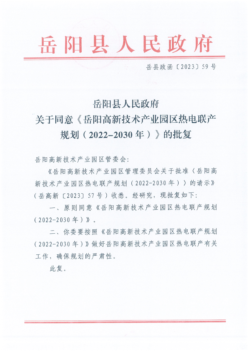 【批后公布】《岳陽高新技術(shù)產(chǎn)業(yè)園熱電聯(lián)產(chǎn)規(guī)劃(2022-2023年)》