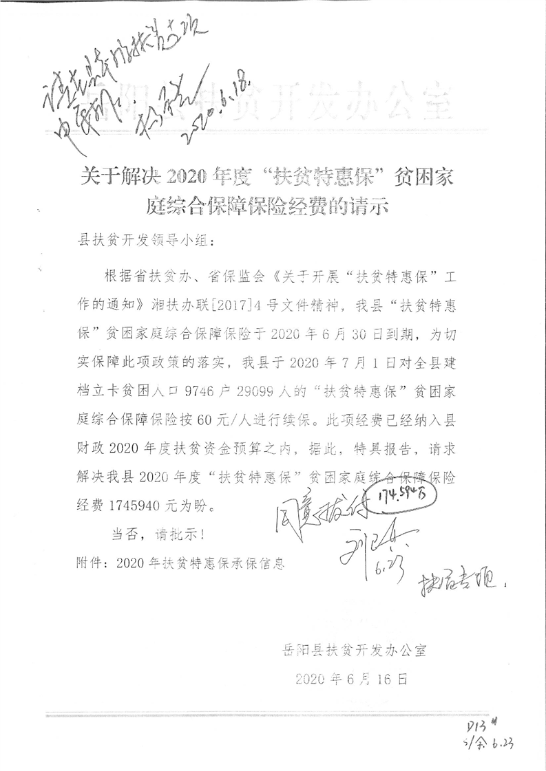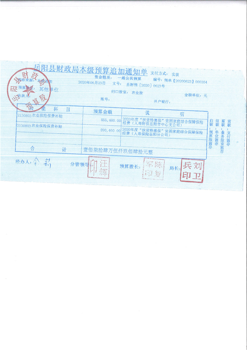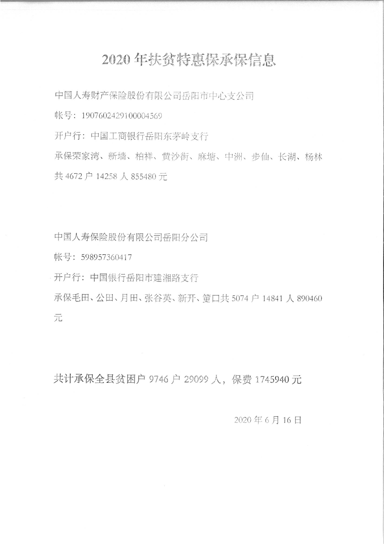 岳陽縣下達(dá)2020年度“扶貧特惠!必毨Ъ彝ゾC合保障保險(xiǎn)經(jīng)費(fèi)公開公示