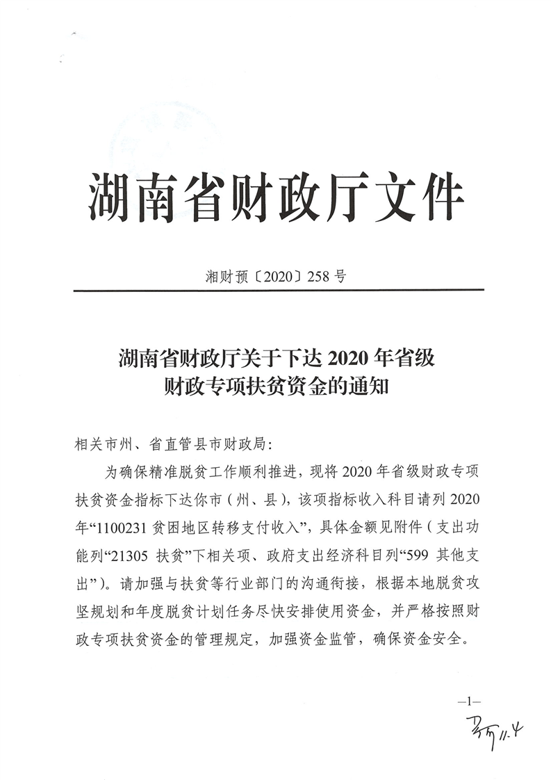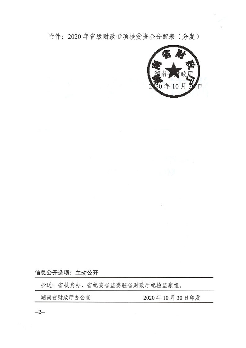 湖南省財政下達2020年省級財政專項扶貧資金公開公示(十四)