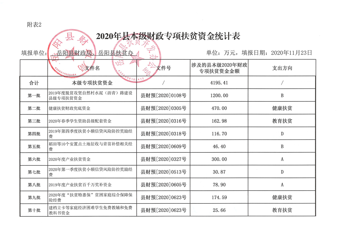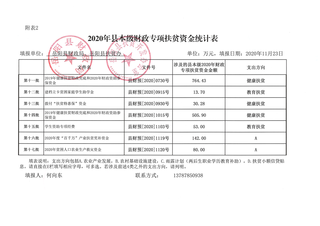 2020年度岳陽縣財(cái)政局本級專項(xiàng)扶貧資金臺賬