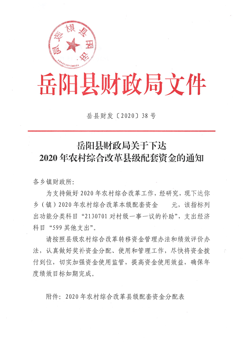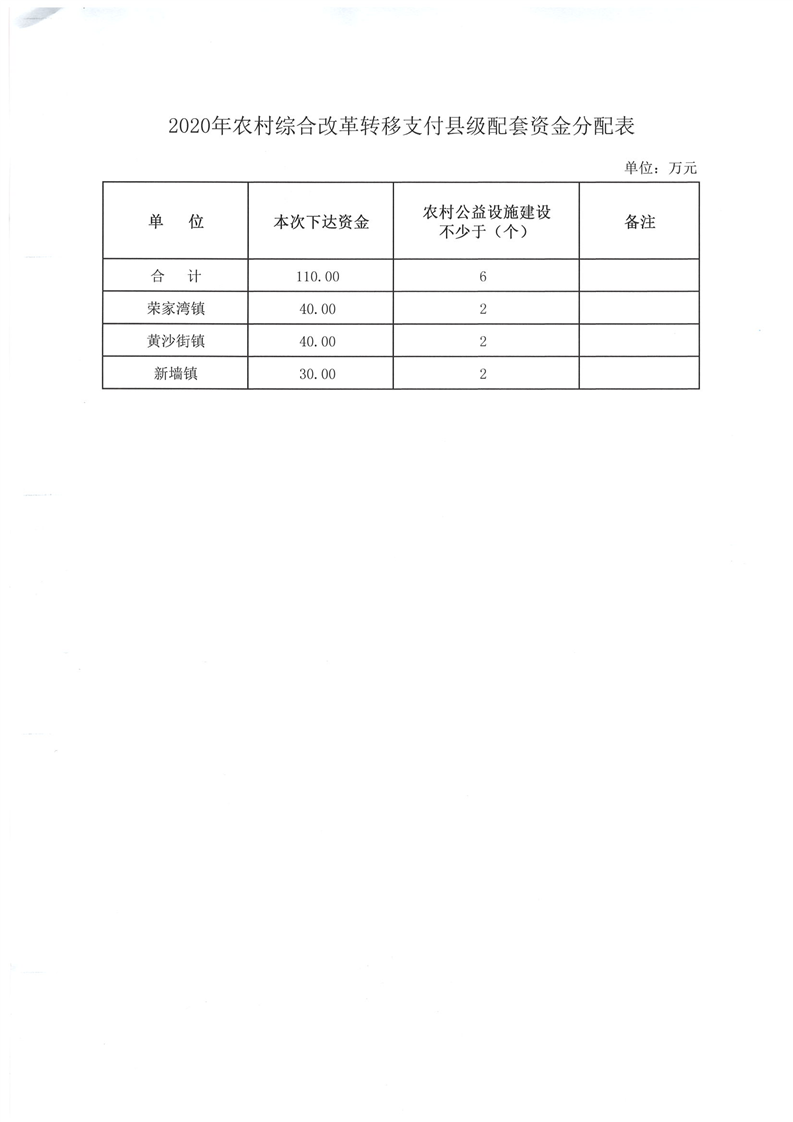 2020年農(nóng)村綜合改革縣級(jí)配套資金公開(kāi)