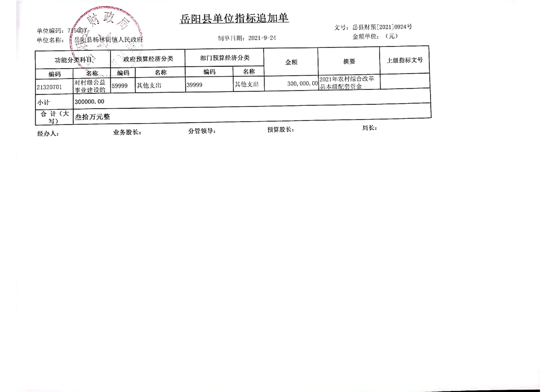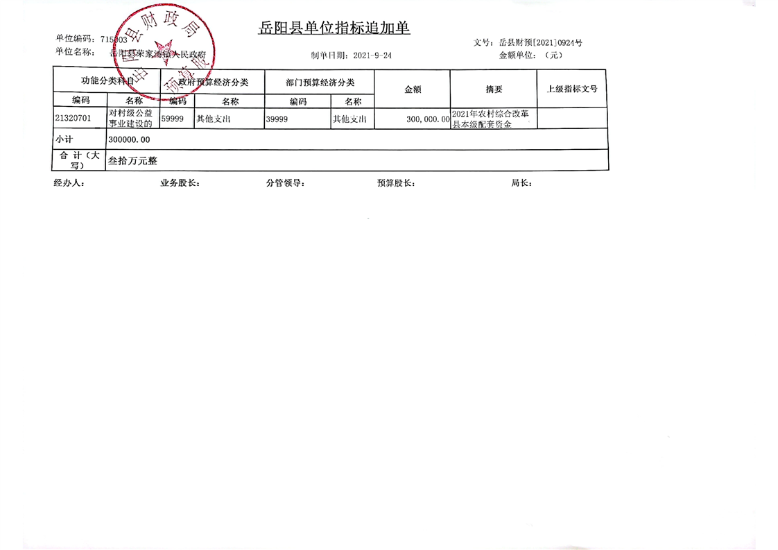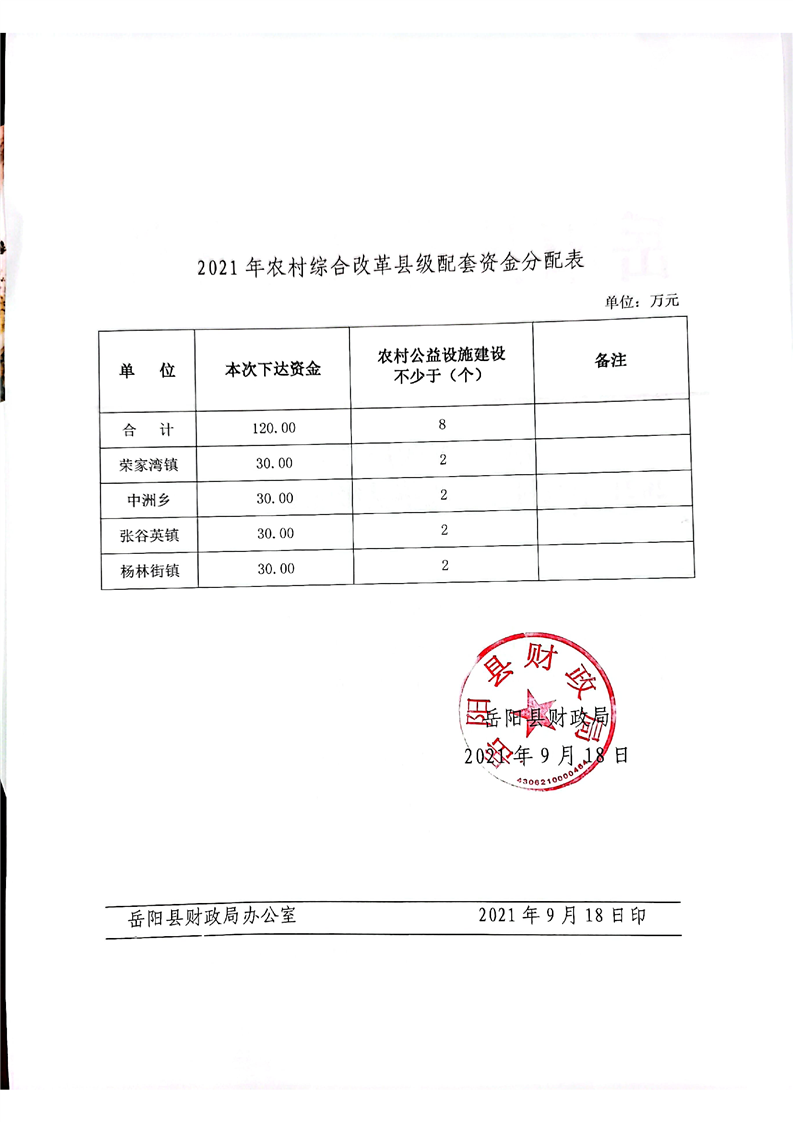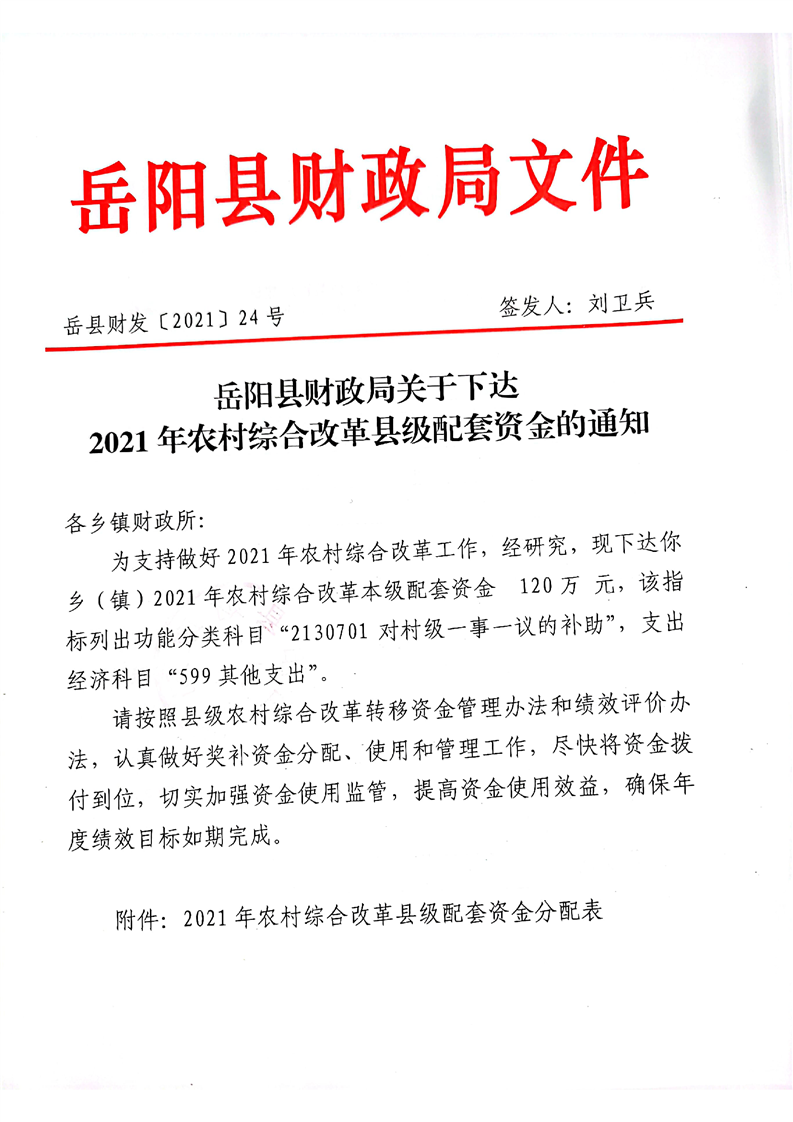 岳陽縣財(cái)政局關(guān)于下達(dá)2021年農(nóng)村綜合改革縣級(jí)配套資金的通知 岳縣財(cái)發(fā)[2021]24號(hào) 120萬