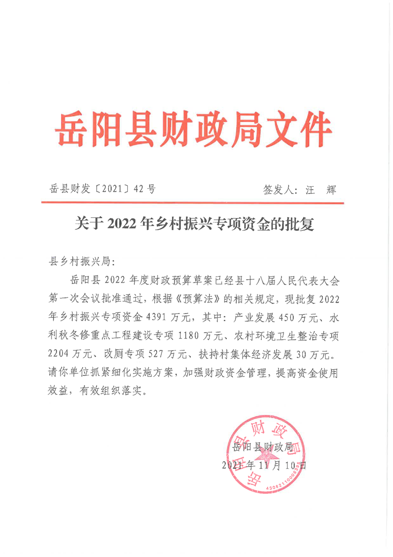 關(guān)于2022年鄉(xiāng)村振興專項(xiàng)資金的批復(fù)公開公示