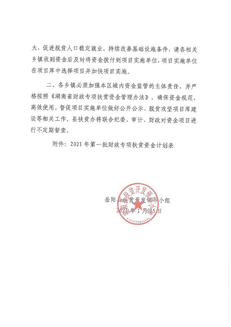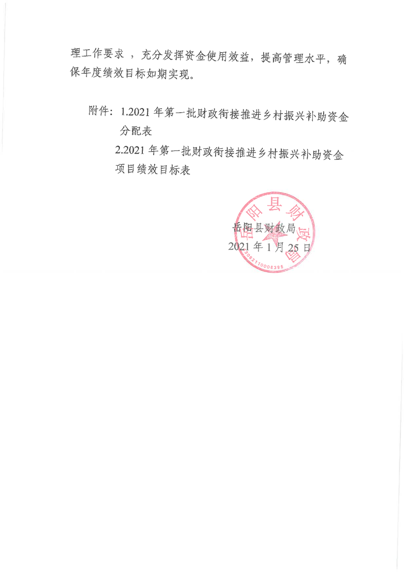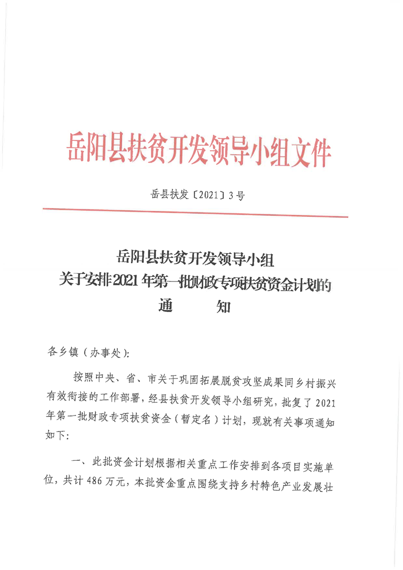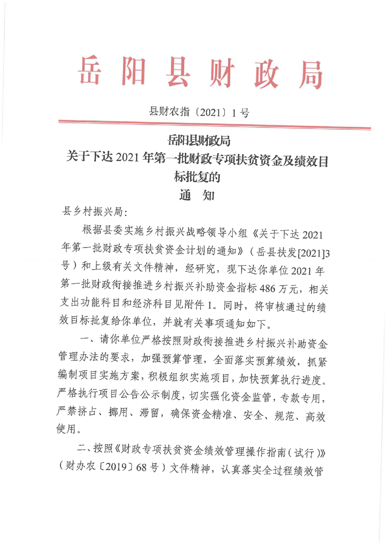 岳陽縣財政局2021年關(guān)于下達(dá)第一批財政專項扶貧資金及績效目標(biāo)批復(fù)公開公示
