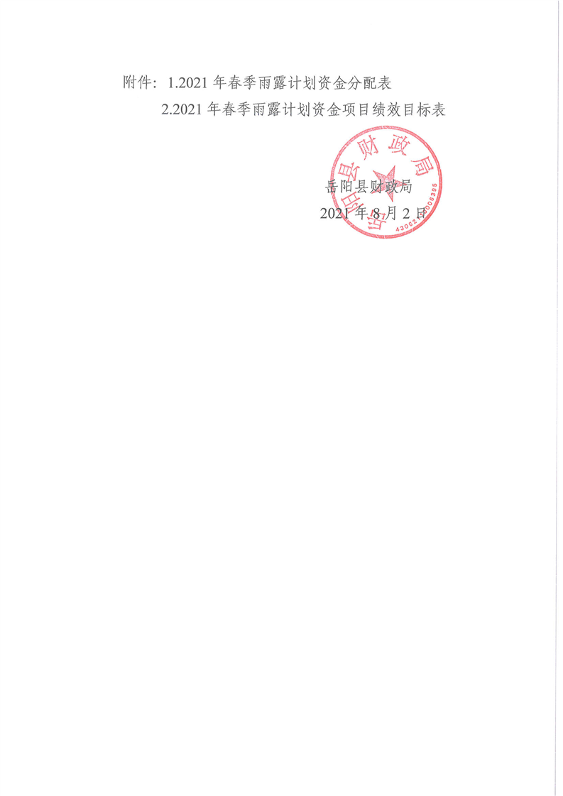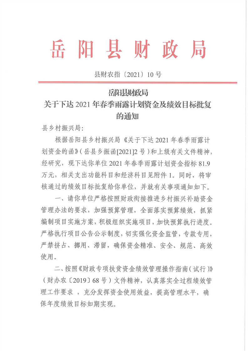 岳陽縣財(cái)政局下達(dá)2021年春季雨露計(jì)劃資金及績效目標(biāo)批復(fù)的公開公示