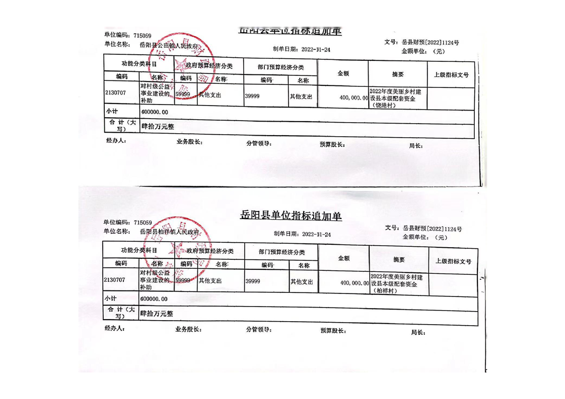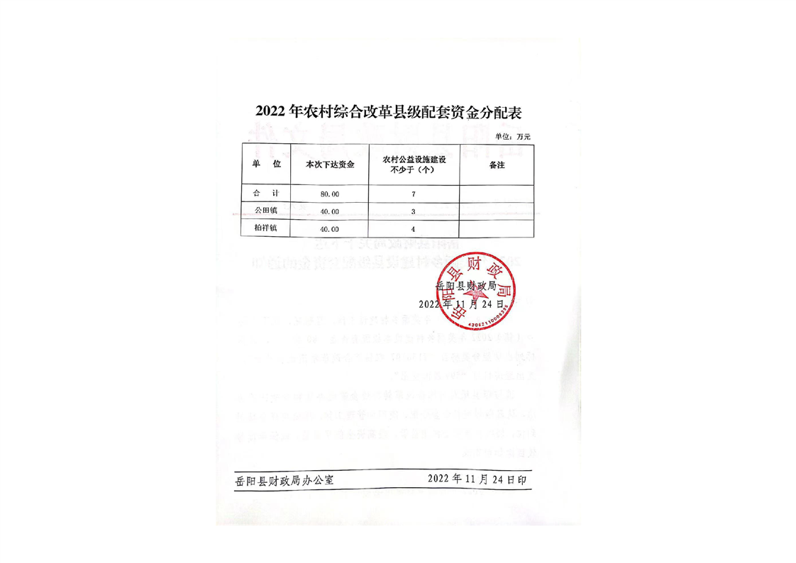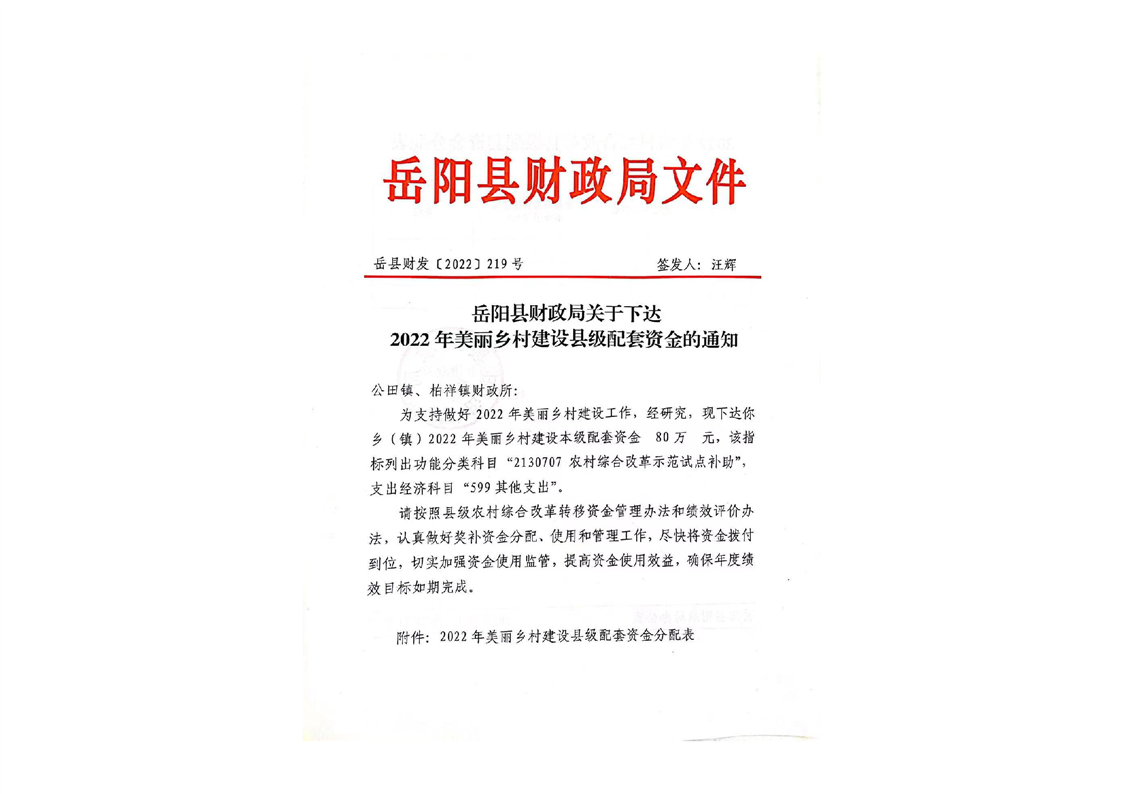 岳陽縣財政局關于下達2022年美麗鄉(xiāng)村建設縣級配套資金的通知(岳縣財發(fā)〔2022〕219號)及資金撥付單