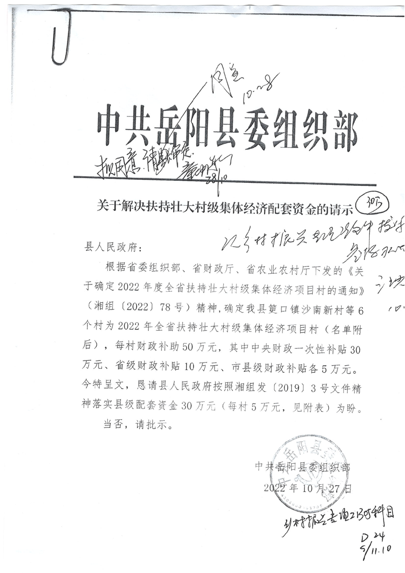 關于解決扶持壯大村級集體經(jīng)濟配套資金的請示、資金撥付單
