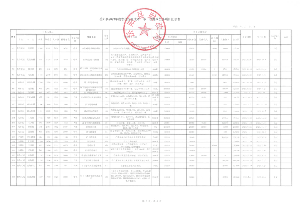 岳陽(yáng)縣2023年度農(nóng)村綜合改革一事一議財(cái)政獎(jiǎng)補(bǔ)項(xiàng)目匯總表