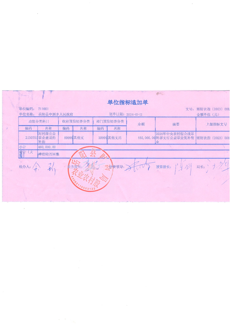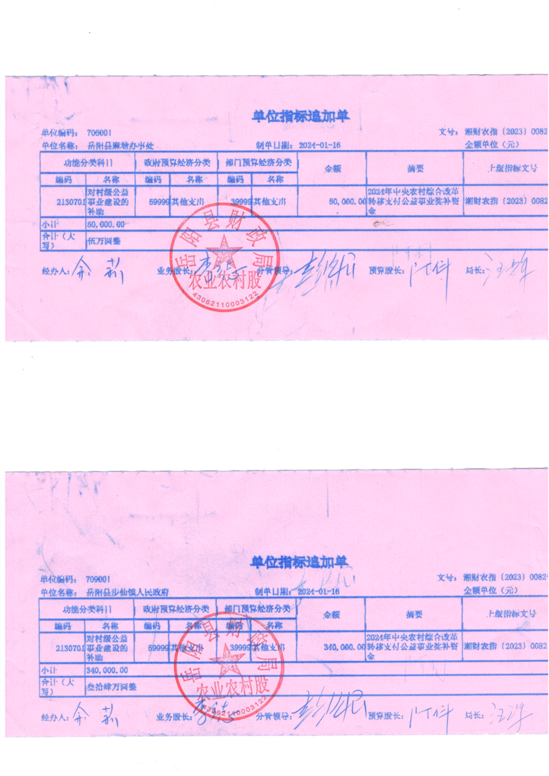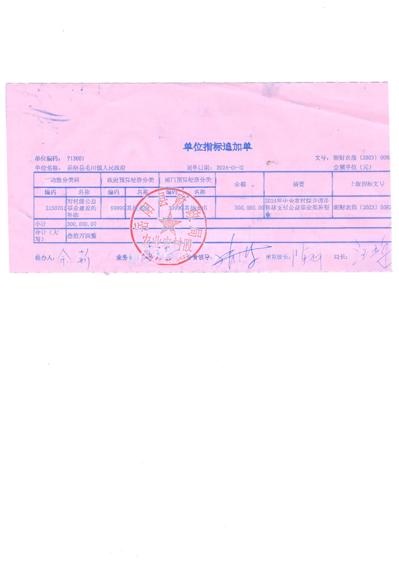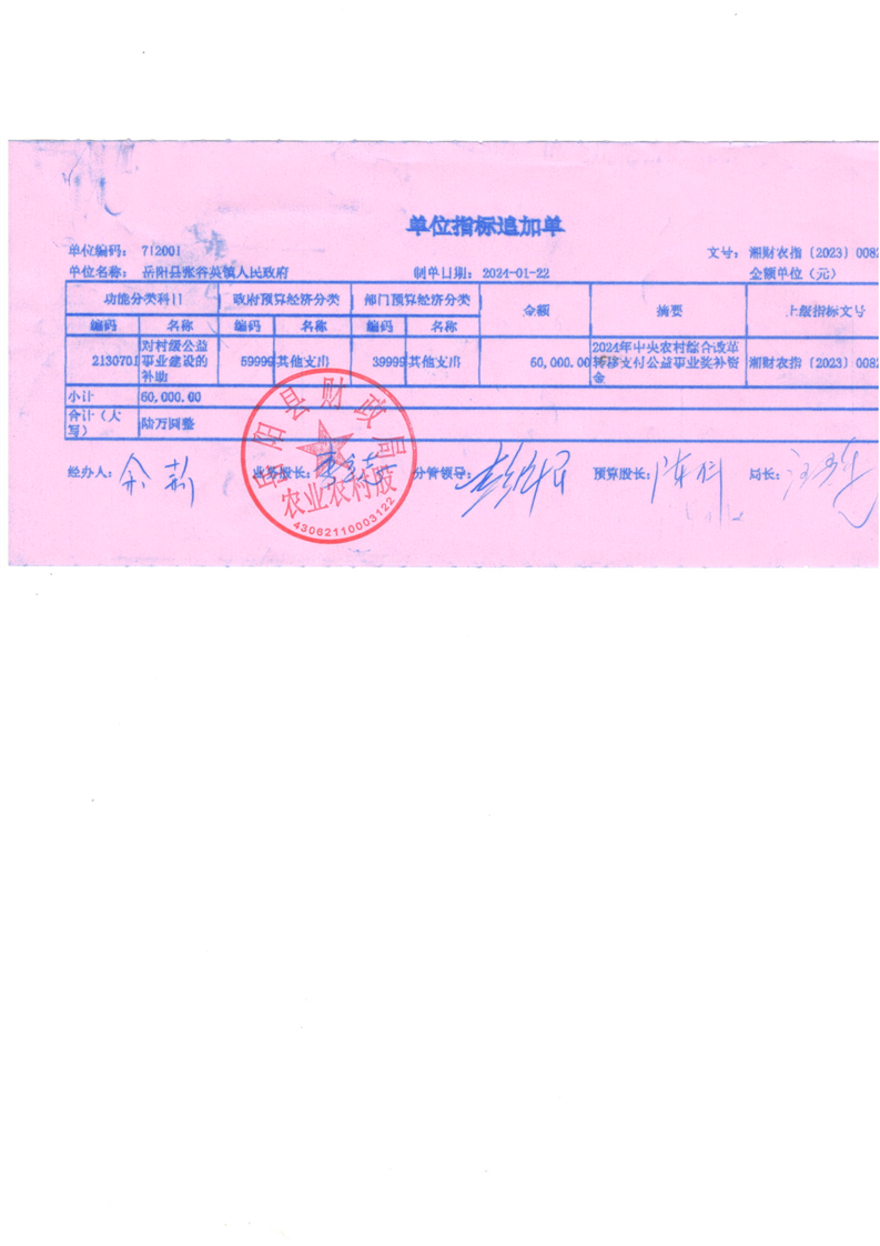 為支持做好2024年農(nóng)村綜合改革轉(zhuǎn)移支付工作,經(jīng)研究,現(xiàn)下達你鄉(xiāng)(鎮(zhèn))2024年農(nóng)村綜合改革轉(zhuǎn)移支付資金905萬元,該指標(biāo)列2024年支出功能科目“2130701對村級公益事業(yè)建設(shè)的補助”,支出經(jīng)濟科目分類列“599其他支出”。