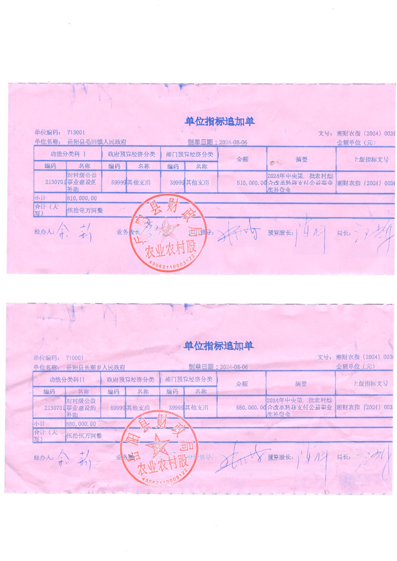為支持做好2024年農(nóng)村綜合改革轉(zhuǎn)移支付工作,經(jīng)研究,現(xiàn)下達你鄉(xiāng)(鎮(zhèn))2024年農(nóng)村綜合改革轉(zhuǎn)移支付資金254萬元, 該指標(biāo)列2024年支出功能科目“2130701對村級公益事業(yè)建設(shè)的補助”,支出經(jīng)濟科目分類列“599其他支出”。