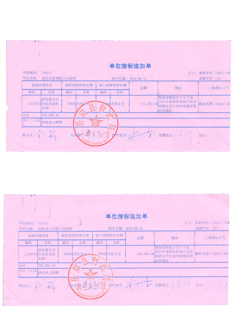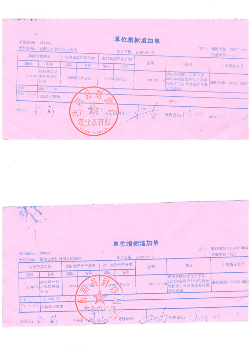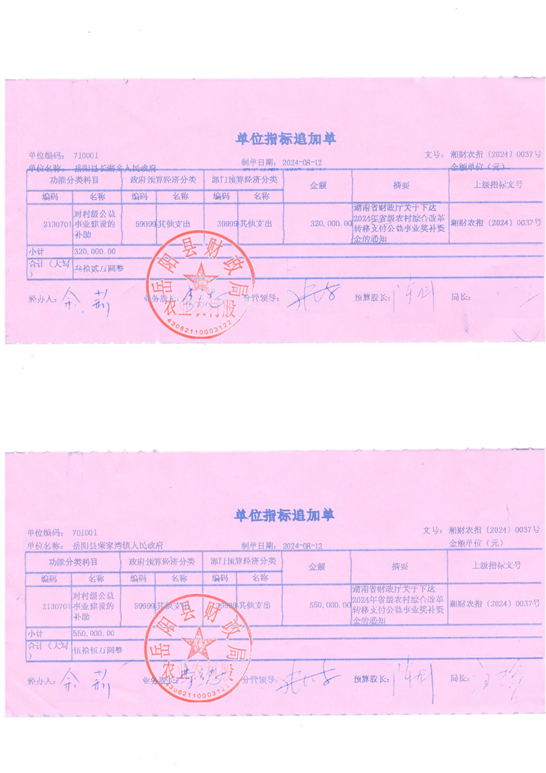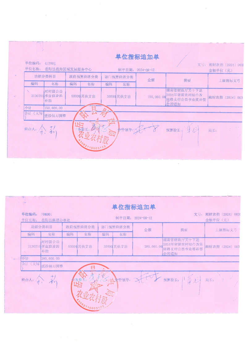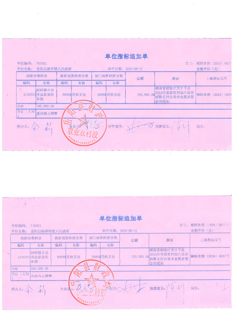 為支持做好2024年農(nóng)村綜合改革轉(zhuǎn)移支付工作,經(jīng)研究,現(xiàn)下達(dá)你鄉(xiāng)(鎮(zhèn))2024年農(nóng)村綜合改革轉(zhuǎn)移支付資金553萬(wàn)元,該指標(biāo)列2024年支出功能科目“2130701對(duì)村級(jí)公益事業(yè)建設(shè)的補(bǔ)助”,支出經(jīng)濟(jì)科目分類(lèi)列“599其他支出”。
