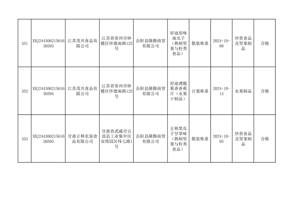 2024年產(chǎn)品抽檢數(shù)據(jù)公示(合格358批次)