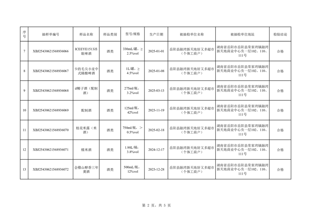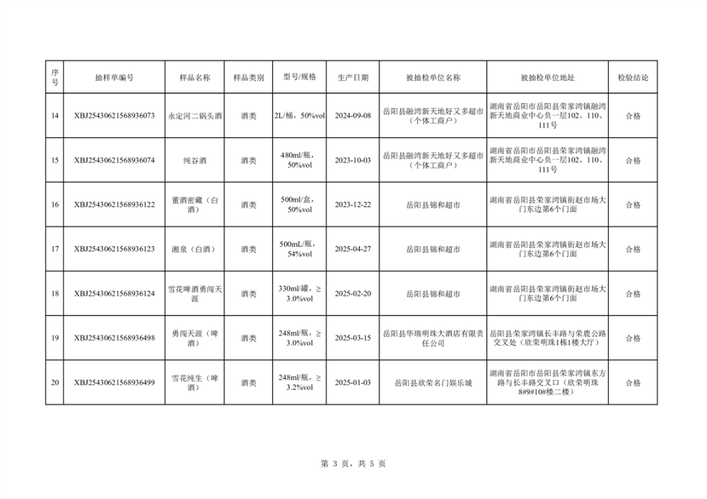 2025年7月8日酒類抽檢數據公示(合格30批次)
