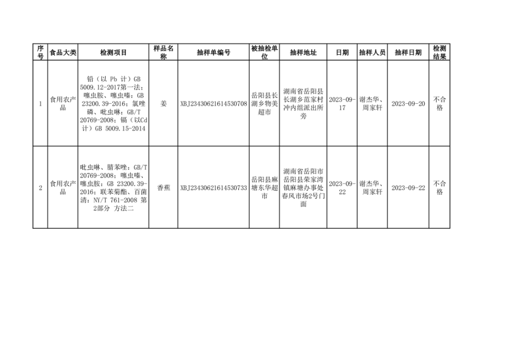 食用農(nóng)產(chǎn)品不合格抽檢信息公示(2批次)