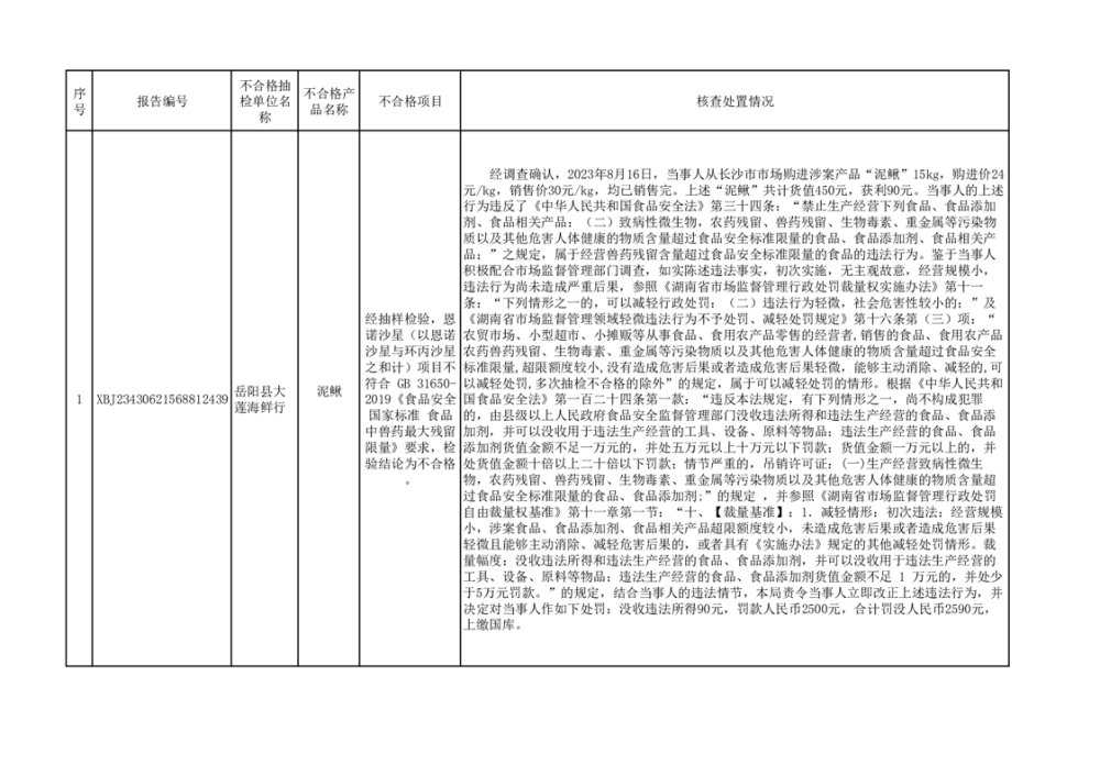 核查處置信息公示(2023年12月7日)