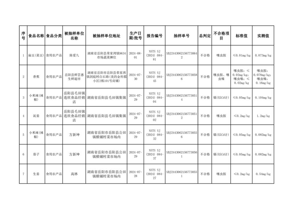 2024年9月18日食品抽檢數(shù)據(jù)公示(不合格7批次)