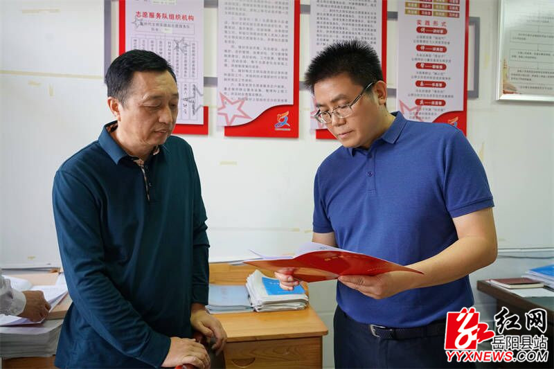 肖湘暉在岳武村村部查看資料臺(tái)賬