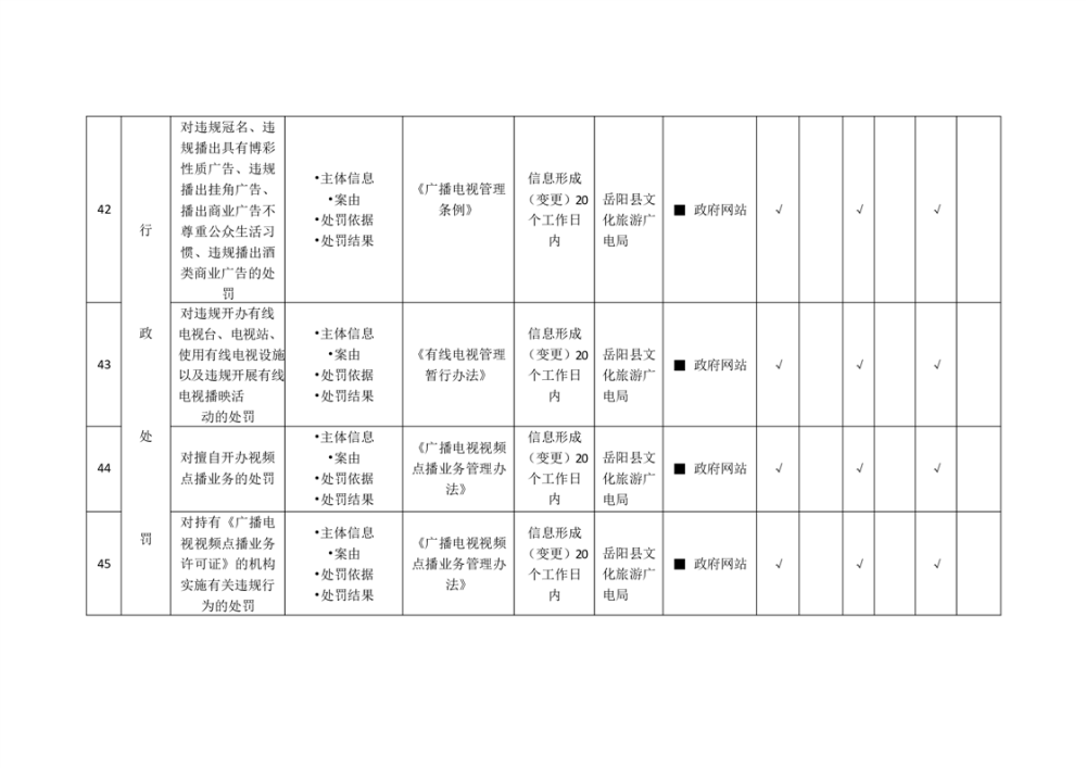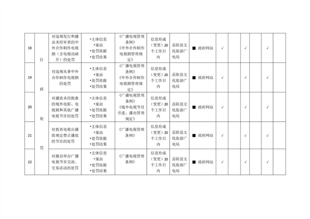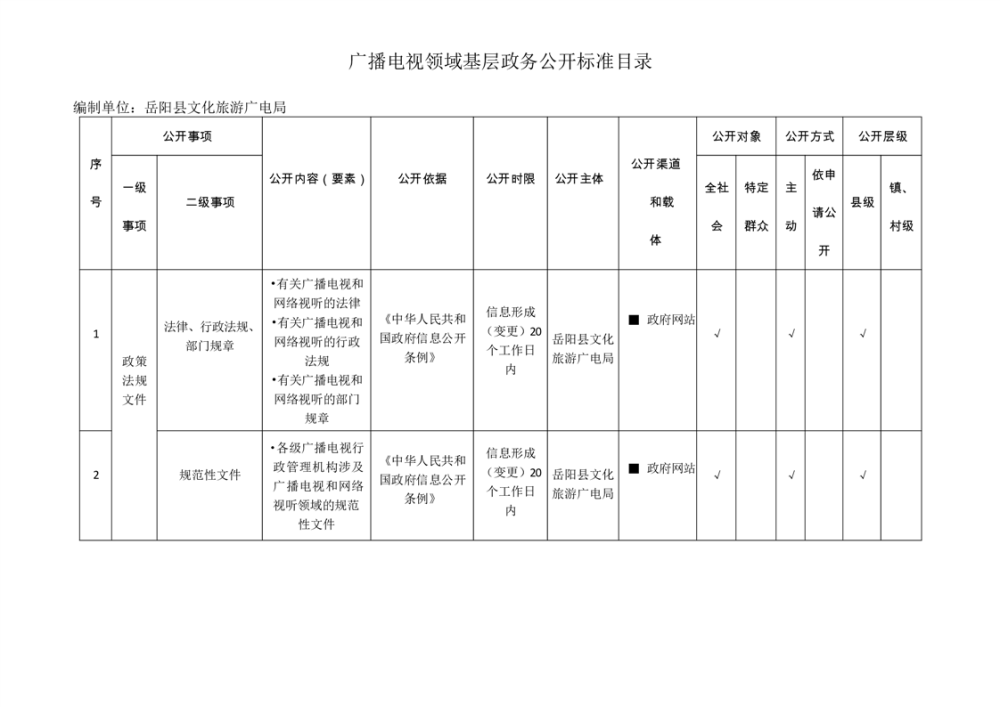 岳陽縣廣播電視領(lǐng)域基層政務(wù)公開標(biāo)準(zhǔn)目錄