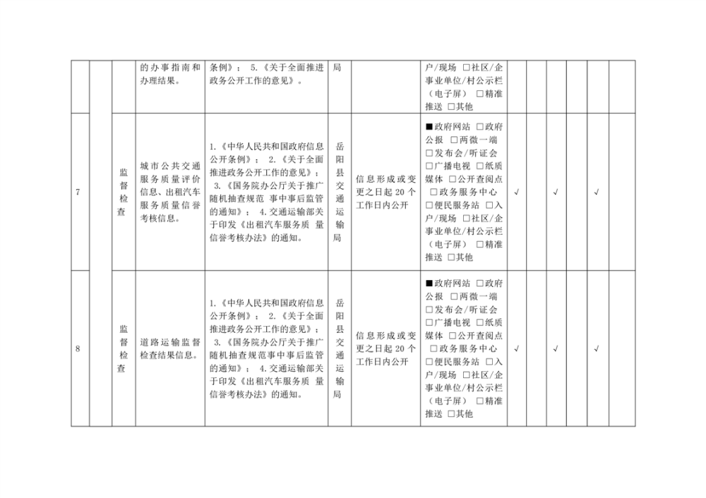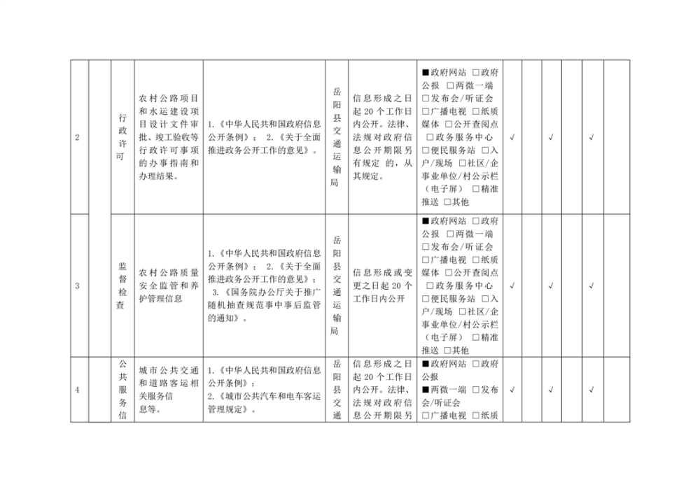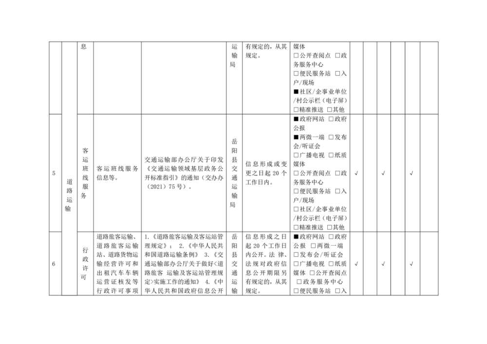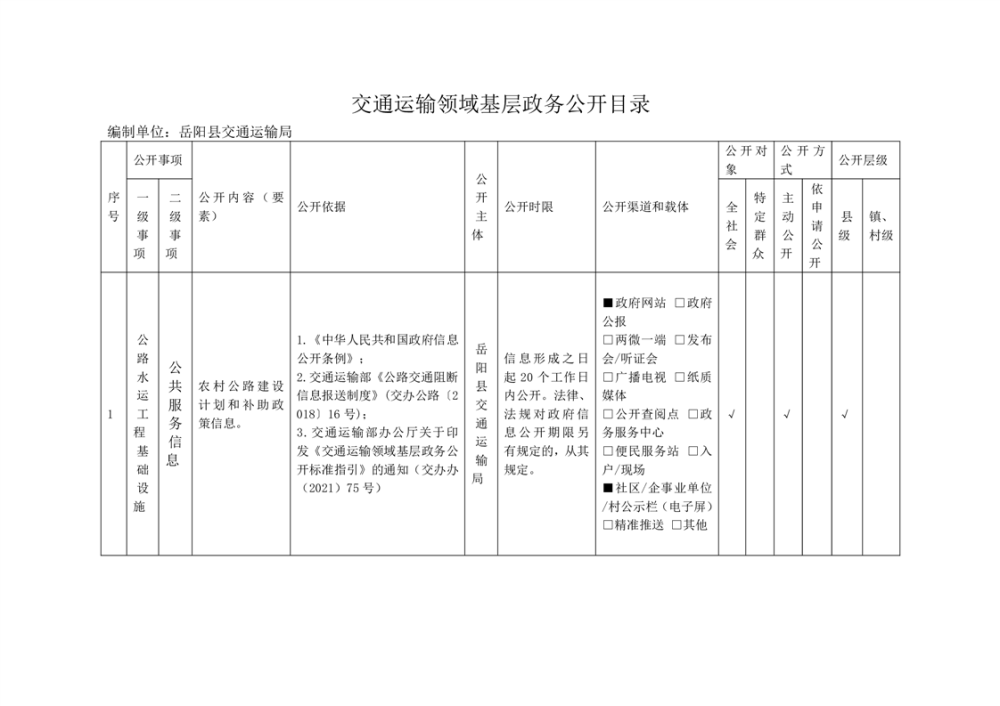 岳陽縣交通運輸領(lǐng)域基層政務(wù)公開事項目錄