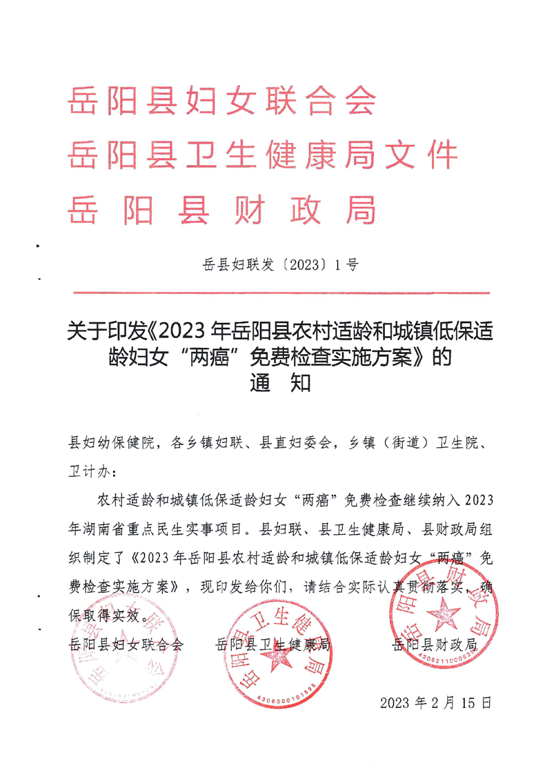 2023年岳陽縣農(nóng)村適齡和城鎮(zhèn)低保適齡婦女“兩癌”免費(fèi)檢查實(shí)施方案