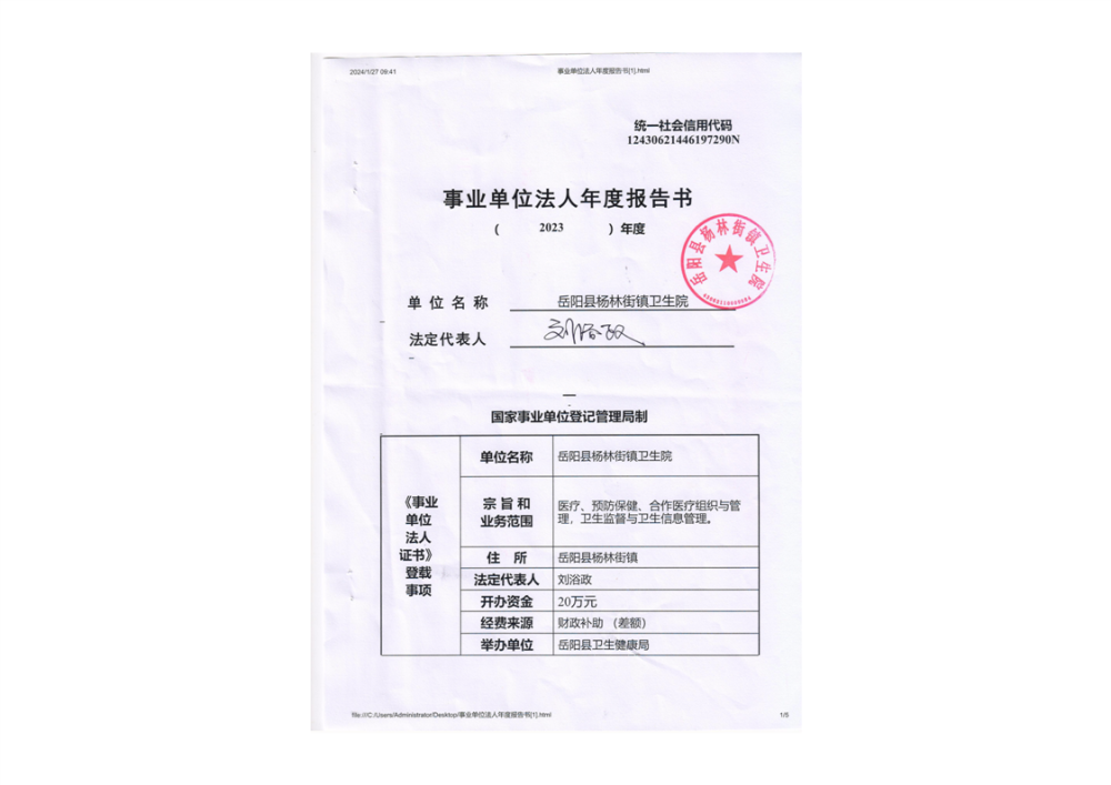 岳陽縣衛(wèi)生健康局楊林街鎮(zhèn)衛(wèi)生院年度報(bào)告書