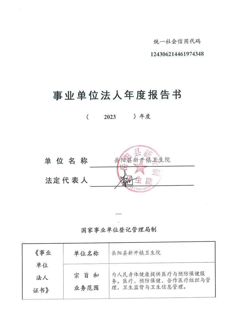 岳陽縣衛(wèi)生健康局新開鎮(zhèn)衛(wèi)生院年度報(bào)告書