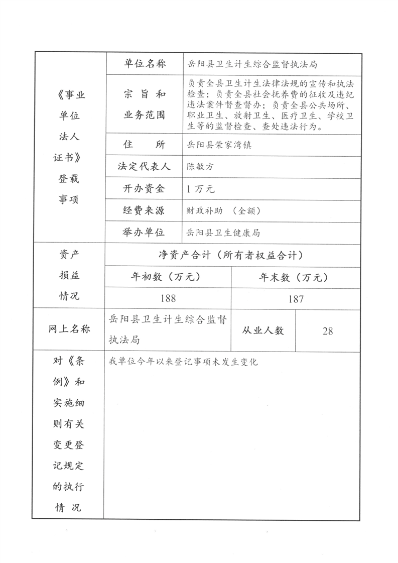 岳陽縣衛(wèi)生健康局縣衛(wèi)生計生綜合執(zhí)法局年度報告書
