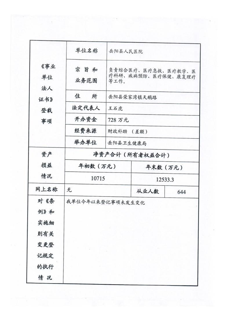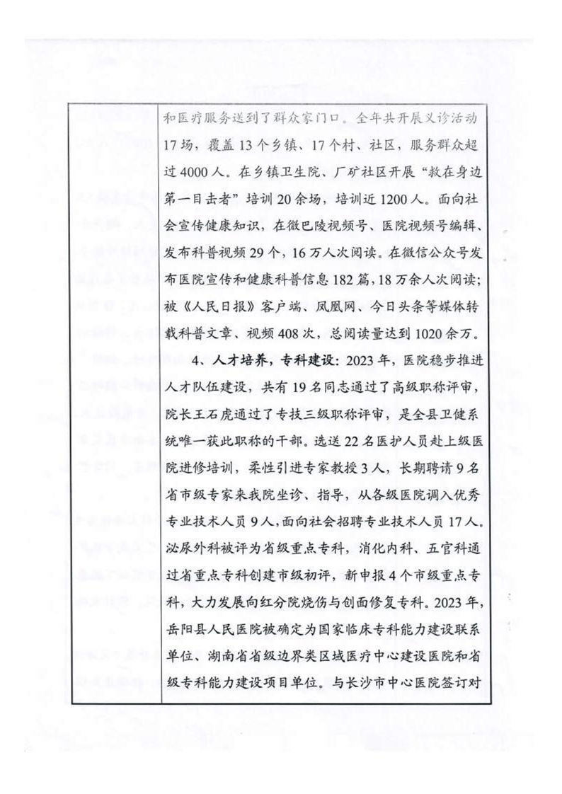 岳陽(yáng)縣衛(wèi)生健康局縣人民醫(yī)院年度報(bào)告書(shū)