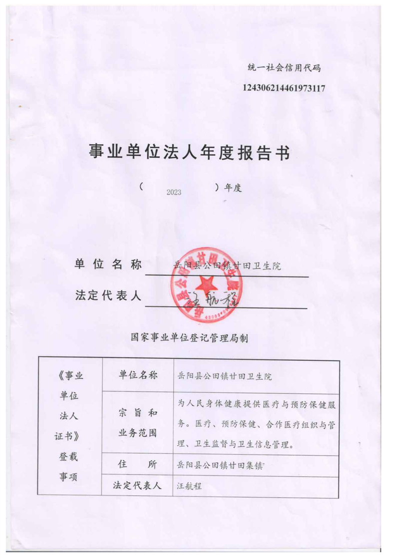 岳陽(yáng)縣衛(wèi)生健康局甘田衛(wèi)生院年度報(bào)告書(shū)