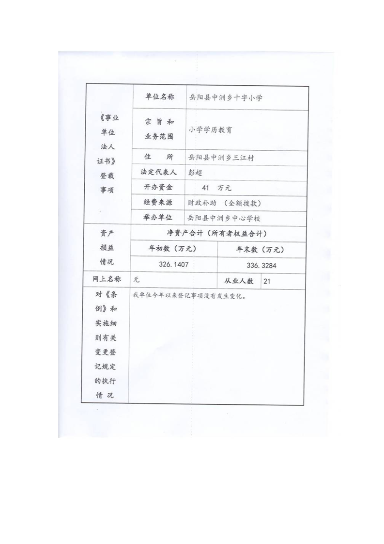 岳陽(yáng)縣中洲鄉(xiāng)十字小學(xué)2023年法人年度報(bào)告書(shū)