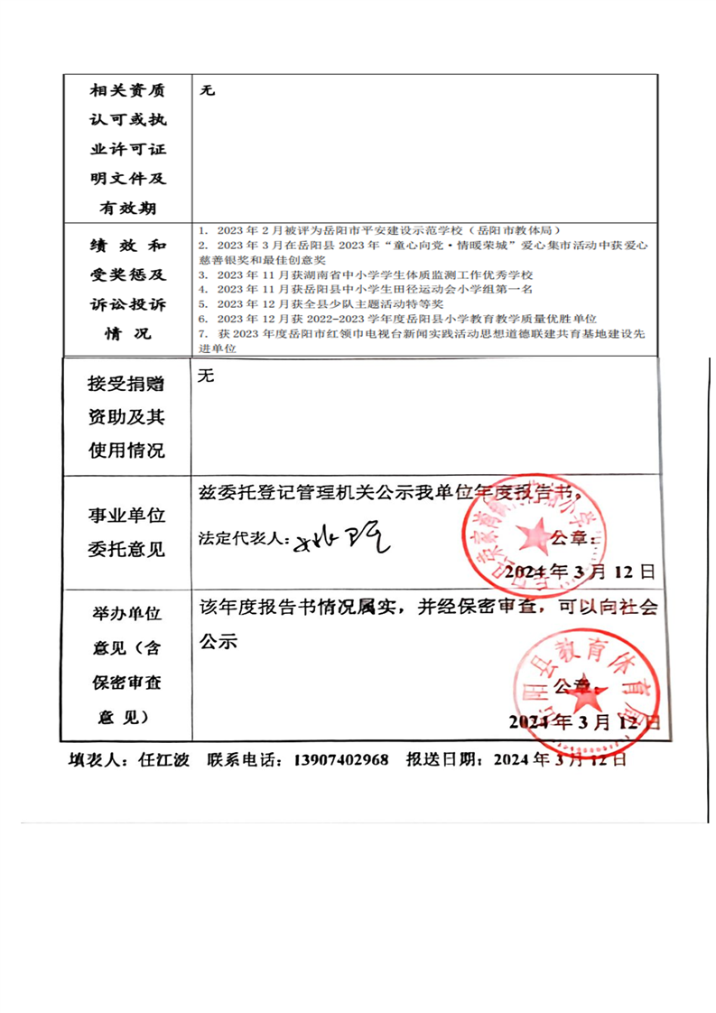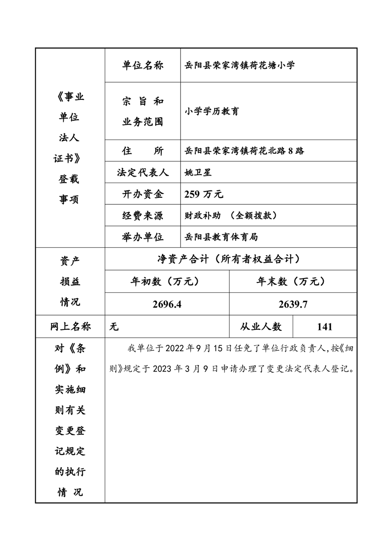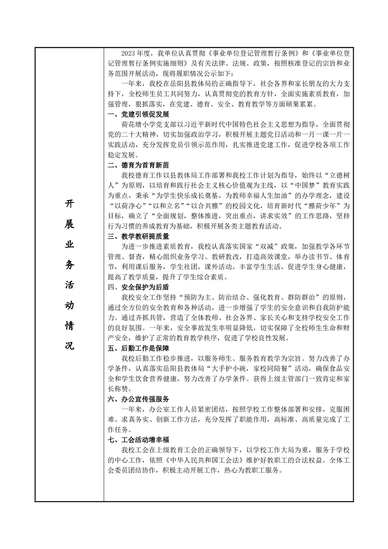 岳陽縣榮家灣鎮(zhèn)荷花塘小學(xué)2023年法人年度報(bào)告書