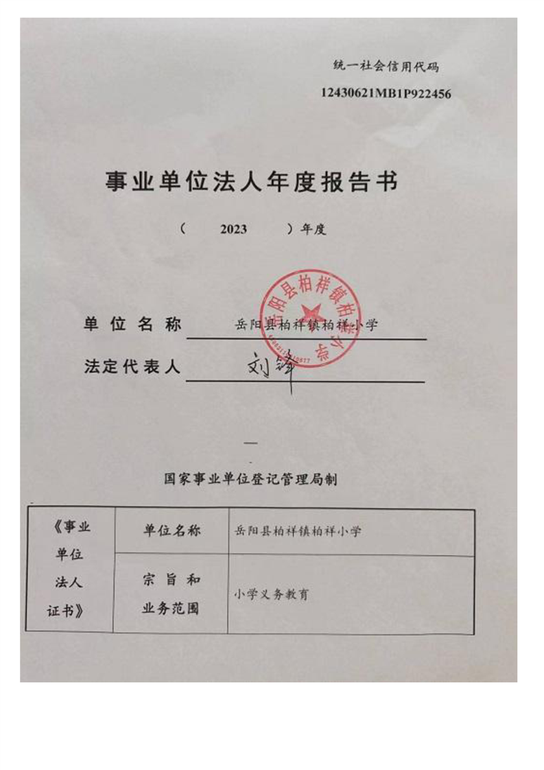 岳陽(yáng)縣柏祥鎮(zhèn)柏祥小學(xué)2023年法人年度報(bào)告