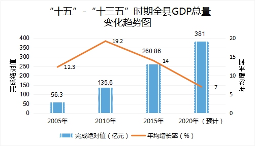 經(jīng)濟(jì)平穩(wěn)較快增長(zhǎng)。到2020年底,全縣預(yù)計(jì)完成地區(qū)生產(chǎn)總值381億元,比2015年(下同)增加121億元,年均增長(zhǎng)7%;一般公共預(yù)算地方收入7.15億元,增長(zhǎng)49%,年均增長(zhǎng)8.3%;固定資產(chǎn)投資年均增長(zhǎng)11.7%;社會(huì)消費(fèi)品零售總額124億元,增長(zhǎng)46%,年均增長(zhǎng)6.5%;城鎮(zhèn)居民人均可支配收入32517元,增長(zhǎng)46.5%,年均增長(zhǎng)7.7%;農(nóng)村居民人均可支配收入19348元,增長(zhǎng)51.8%,年均增長(zhǎng)8.7%。五年來(lái),爭(zhēng)取國(guó)家重點(diǎn)投入項(xiàng)目563個(gè),到位資金123.9億元;爭(zhēng)取融資項(xiàng)目16個(gè),落實(shí)資金49.6億元;引進(jìn)招商項(xiàng)目超過(guò)200個(gè),到位資金突破400億元。財(cái)納福諾、漁美康、盛路宸博、慧璟科技等投資過(guò)10億元項(xiàng)目密集進(jìn)駐我縣,是歷史上項(xiàng)目建設(shè)力度最大的時(shí)期。