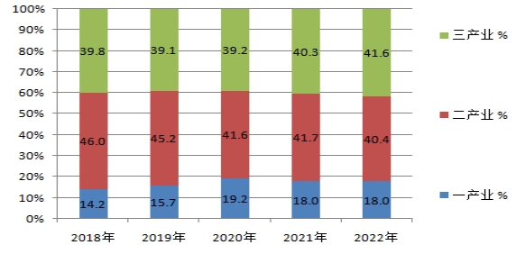 2018-2022年三次產(chǎn)業(yè)增加值占地區(qū)生產(chǎn)總值比重