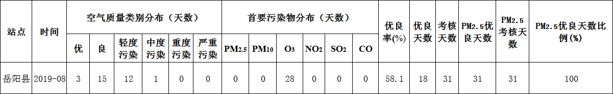 岳陽(yáng)縣2019年8月份空氣質(zhì)量狀況統(tǒng)計(jì)
