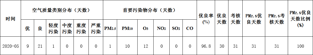 岳陽縣5月份空氣質(zhì)量狀況統(tǒng)計