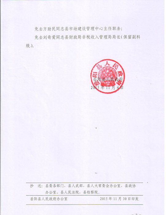 關(guān)于商務(wù)局副局長(zhǎng)方助民同志免去市場(chǎng)建設(shè)管理中心主任職務(wù)的通知