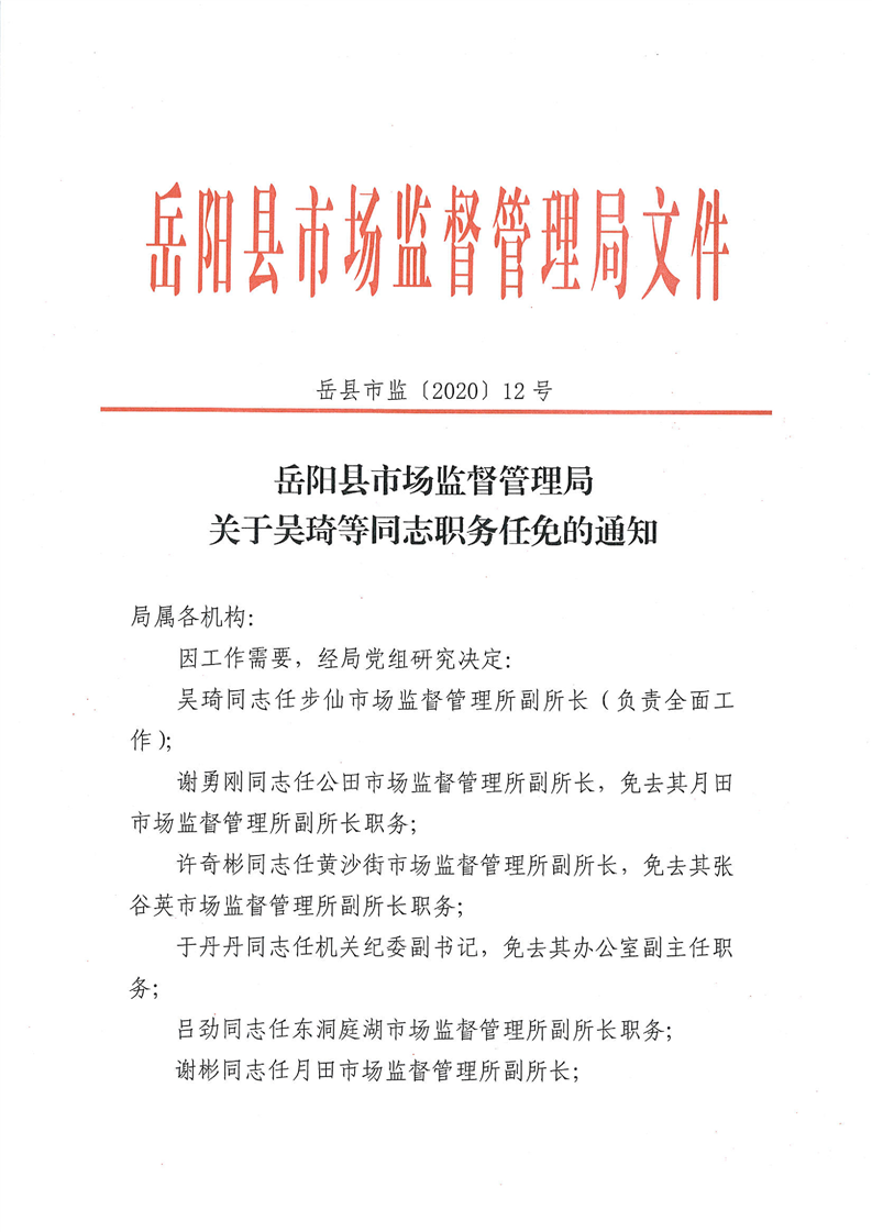 關(guān)于吳琦等同志職務(wù)任免的通知