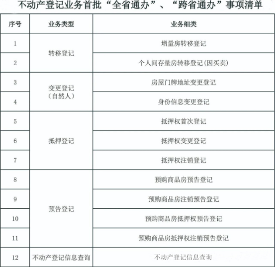 國(guó)有建設(shè)用地使用權(quán)及房屋所有權(quán)的轉(zhuǎn)移登記、變更登記(自然人)、抵押登記、預(yù)告登記及不動(dòng)產(chǎn)登記信息查詢等五大類(lèi)12項(xiàng)高頻不動(dòng)產(chǎn)登記業(yè)務(wù)(見(jiàn)附件1)。