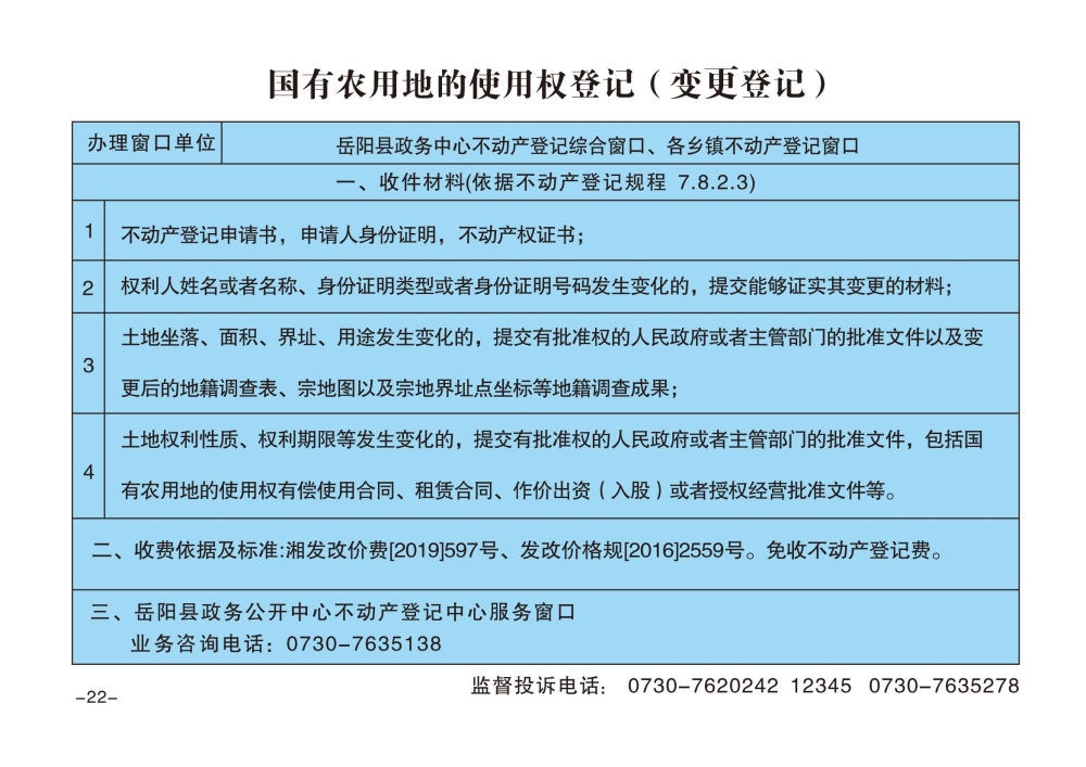 國(guó)有農(nóng)用地的使用權(quán)登記(變更登記)辦事指南
