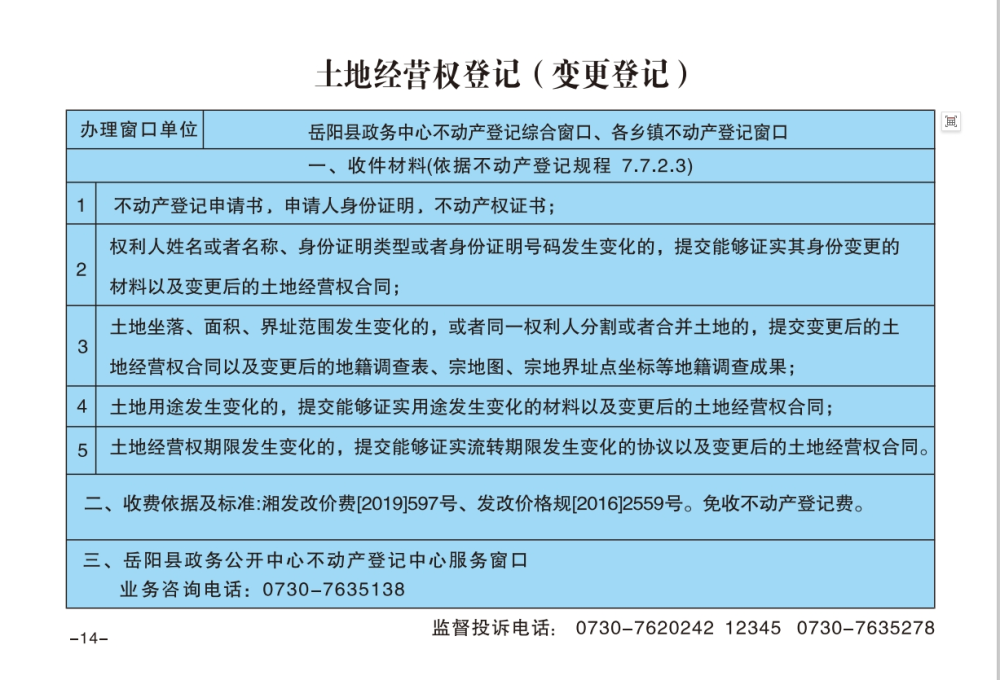 土地經(jīng)營(yíng)權(quán)登記(變更登記)辦事指南