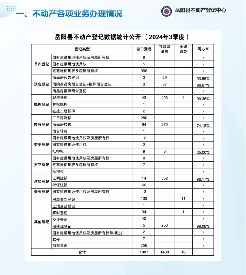 岳陽縣不動產登記第三季度業(yè)務辦理情況