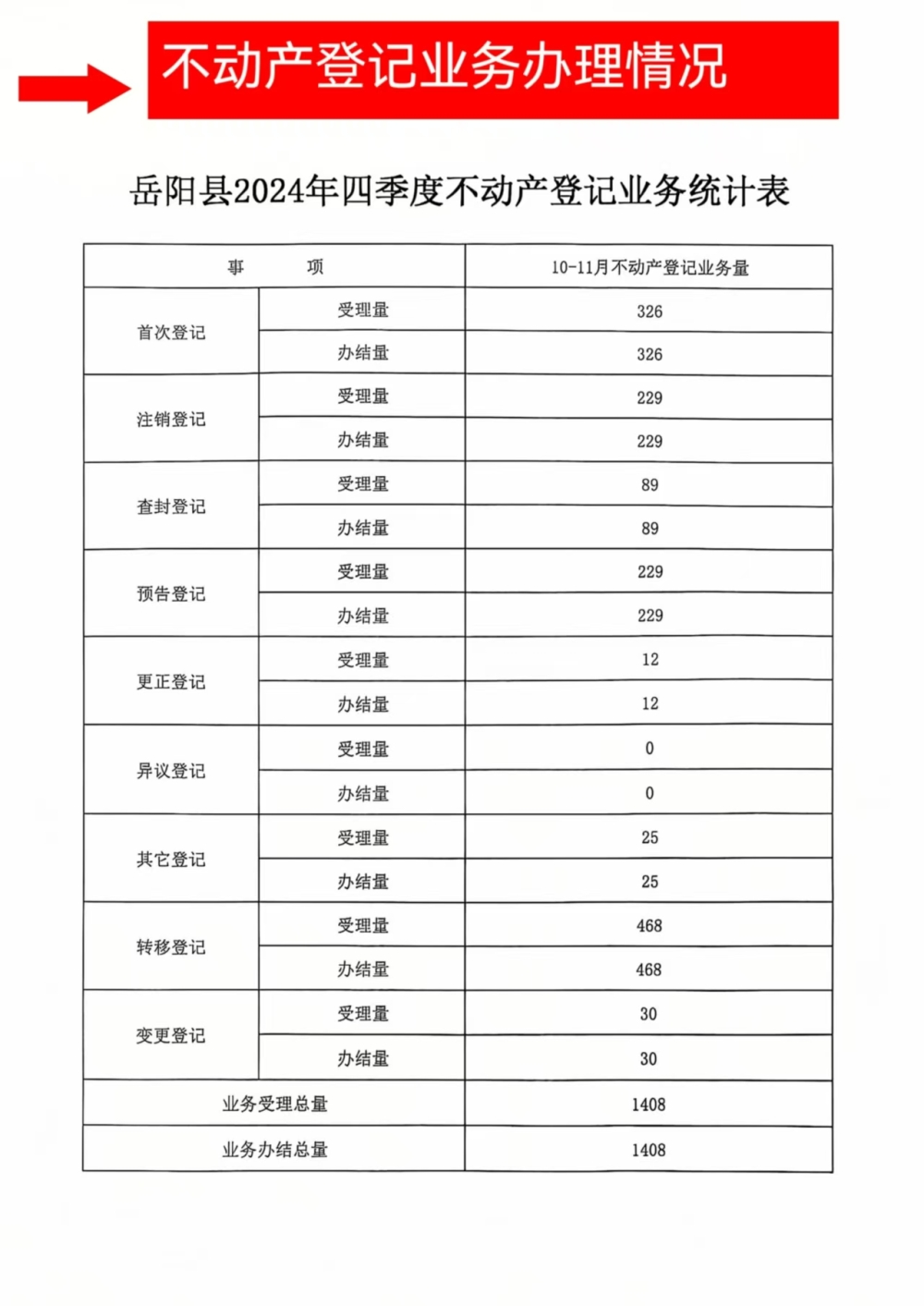 岳陽(yáng)縣2024年四季度不動(dòng)產(chǎn)登記業(yè)務(wù)統(tǒng)計(jì)表