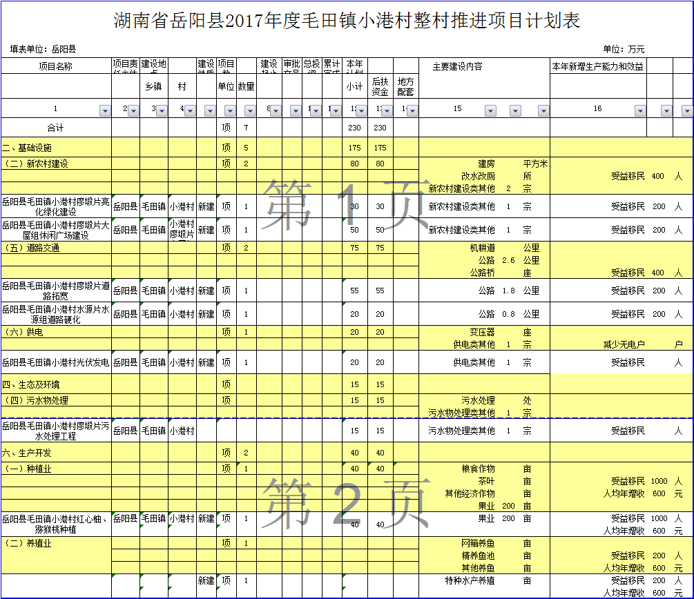 湖南省岳陽縣2017年度毛田鎮(zhèn)小港存整存推進(jìn)項目計劃表