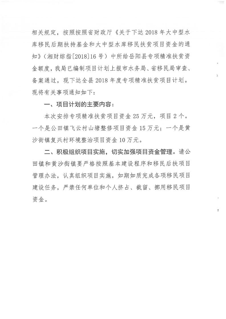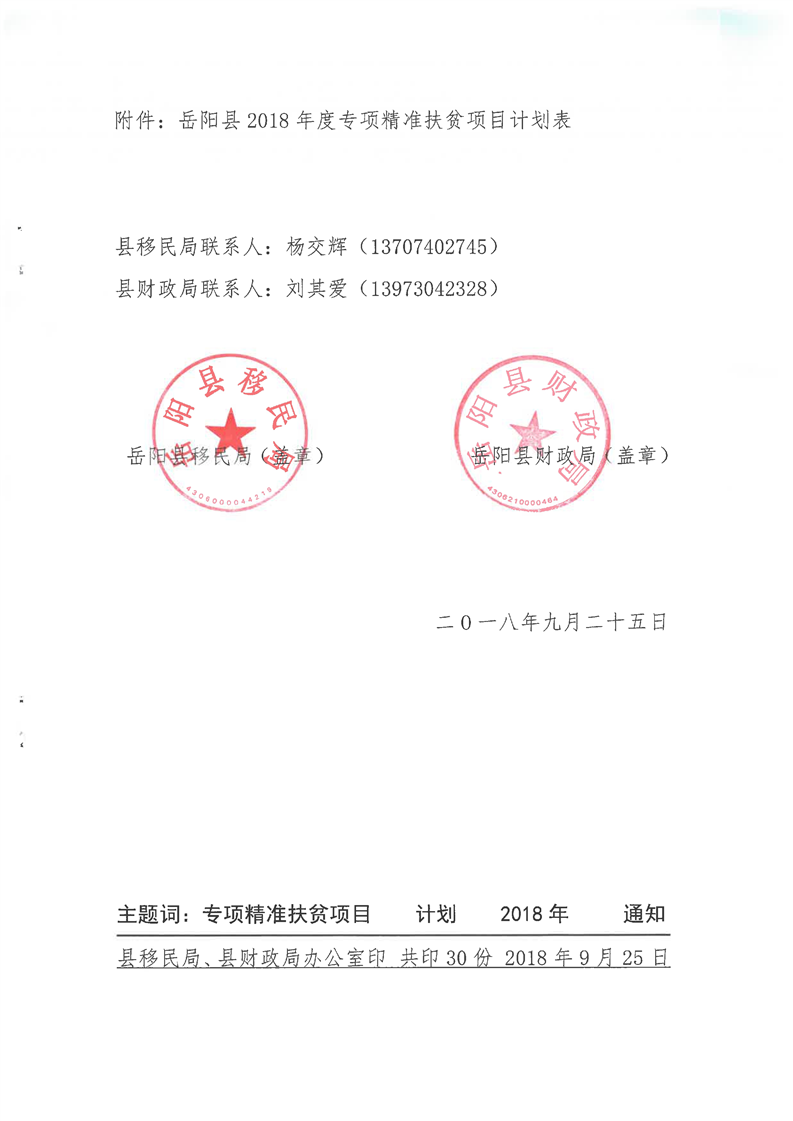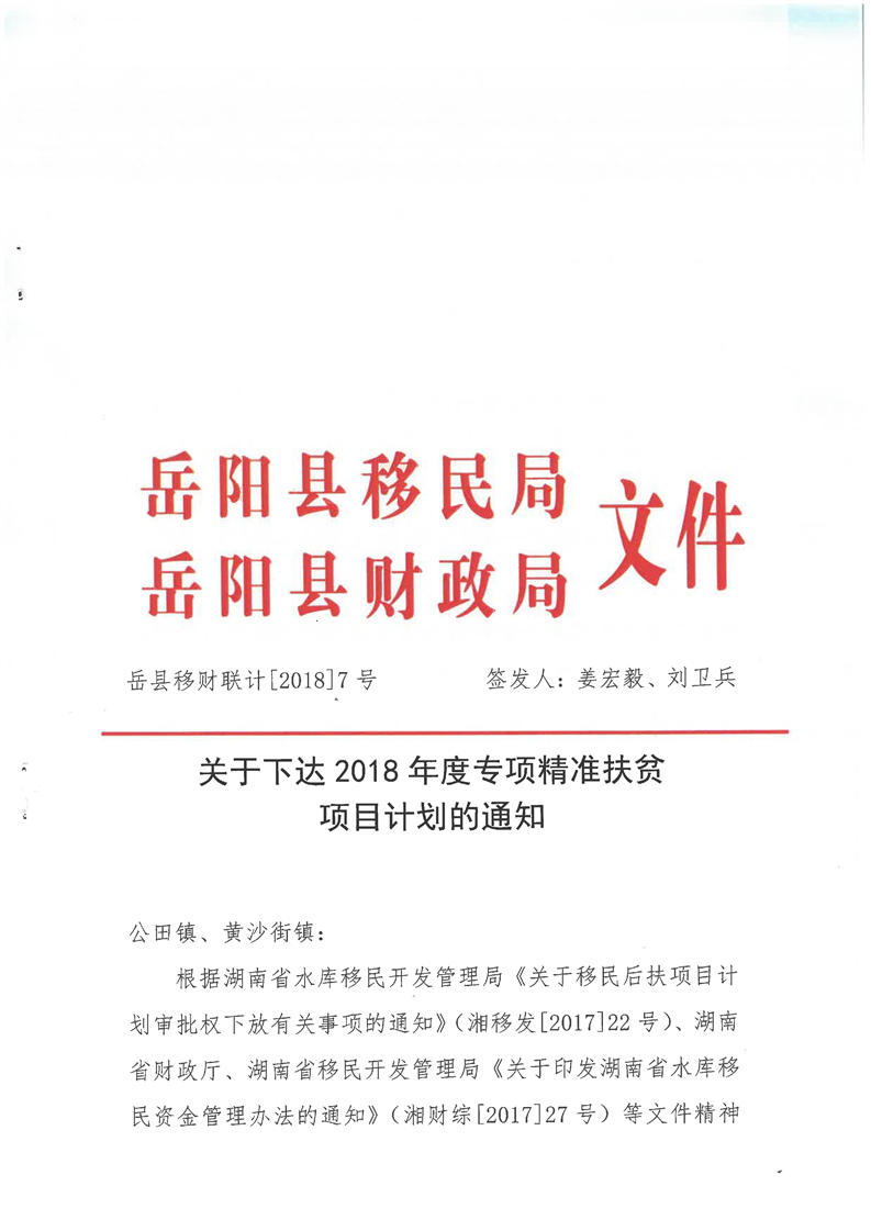 岳縣移計[2018]7號文計劃下達(dá)的通知