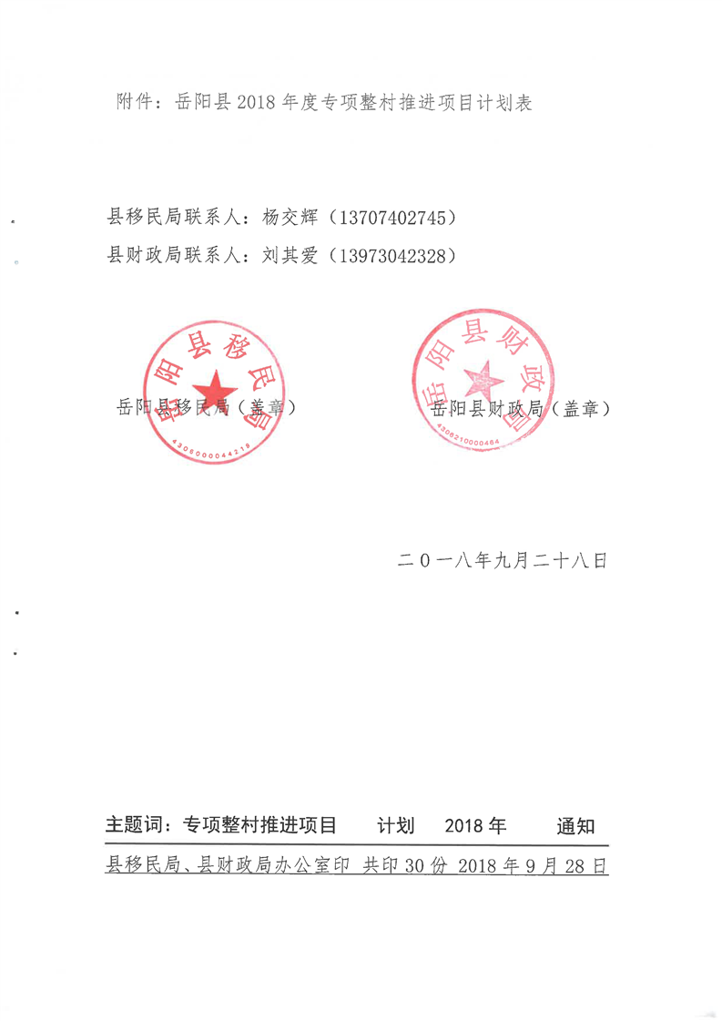 岳縣移計(jì)[2018]9號(hào)文計(jì)劃下達(dá)的通知