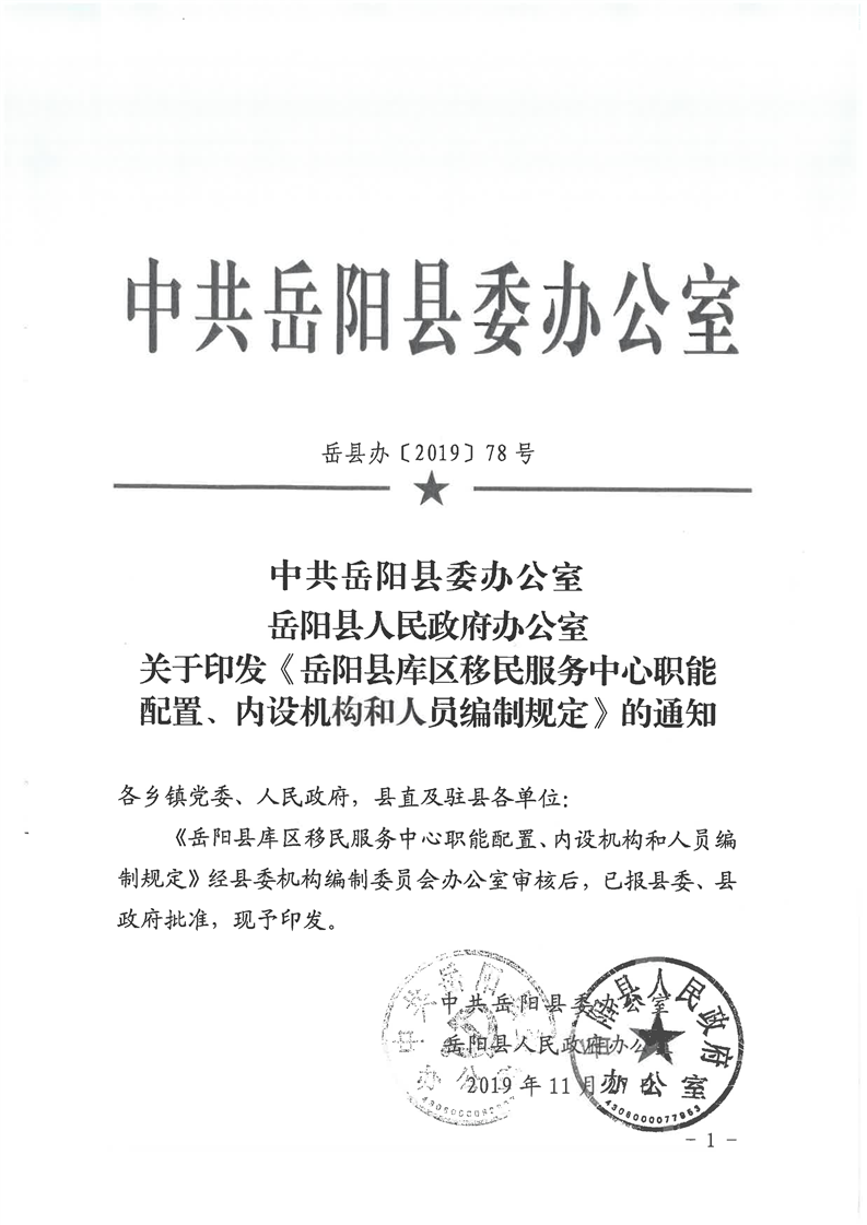 岳陽縣庫區(qū)移民服務中心職能配置內(nèi)設機構(gòu)和人員編制規(guī)定