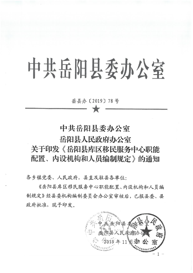 關(guān)于印發(fā)《岳陽(yáng)縣庫(kù)區(qū)移民服務(wù)中心職能配置、內(nèi)設(shè)機(jī)構(gòu)和人員編制規(guī)定》的通知
