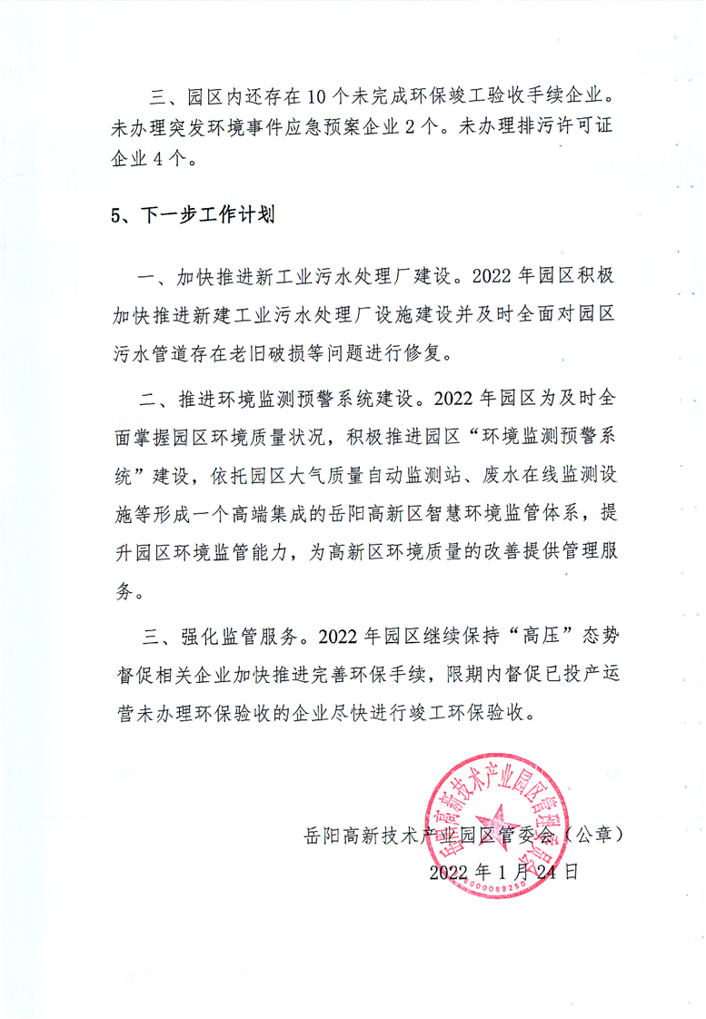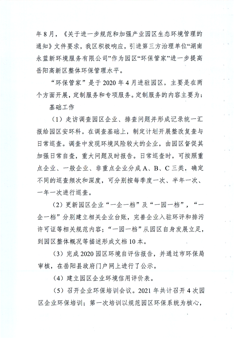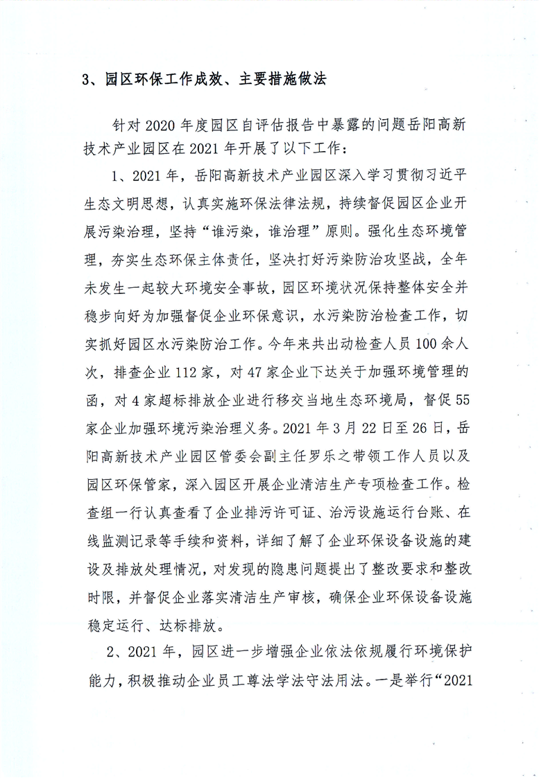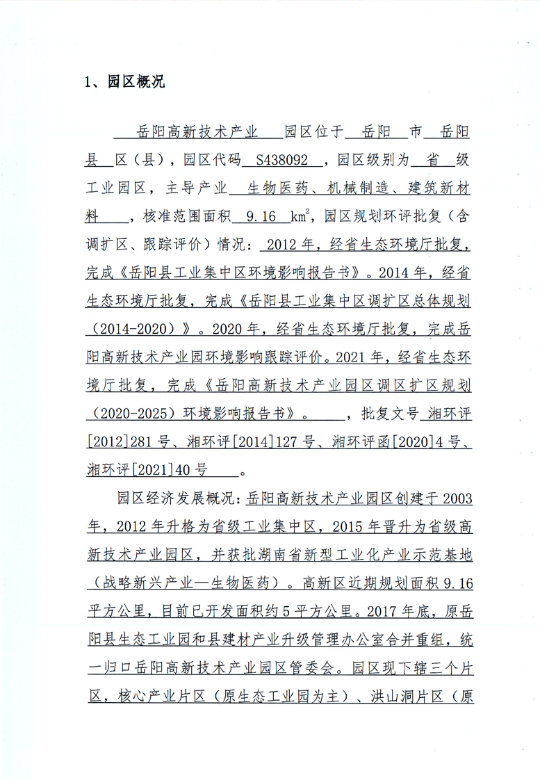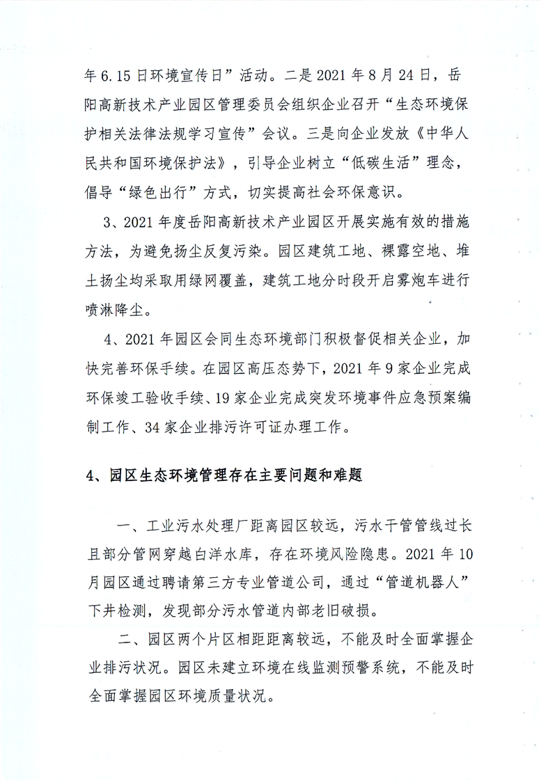 岳陽(yáng)高新技術(shù)產(chǎn)業(yè)園區(qū)2021年度生態(tài)環(huán)境管理現(xiàn)狀自評(píng)估報(bào)告